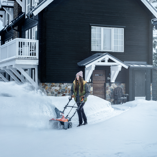 Souffleuse à neige sur batterie légère et fiable qui permet de déblayer sans effort la neige dans les jardins et les allées de petites et moyennes tailles. Equipé d'une poignée pliante qui facilite le rangement et d'un éclairage LED pour une excellente bonne visibilité dans l'obscurité. Largeur de travail de 43cm. Poids: 18.5 kg. Fourni hors batterie te hors chargeur.