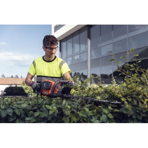 Taille-haie léger et bien équilibré avec une capacité de coupe élevée. Optimisé pour les taillages fréquents. Equipé d'un entrainement à grande vitesse, d'une barre de coupe de 60cm à double tranchant avec des couteaux affutés sur 3 côtés et d'une poignée arrière pivotante très pratique. Poids 3,6kg sans batterie. Fourni sans batterie ni chargeur.