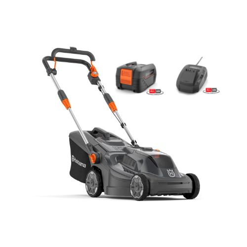 Tondeuse sur batterie pour utilisateurs particuliers, de la gamme Aspire de chez Husqvarna compatible avec n'importe quelle batterie 18V Power 4 All Alliance (batteries Bosch,...). Tondeuse à pousser légère, équipée de poignées téléscopiques, d'un réglage de hauteur de coupe centralisé pour une utilisation et un stockage faciles. Mulching inclus. Fourni avec batterie 18-B72 et chargeur 18-C70.
